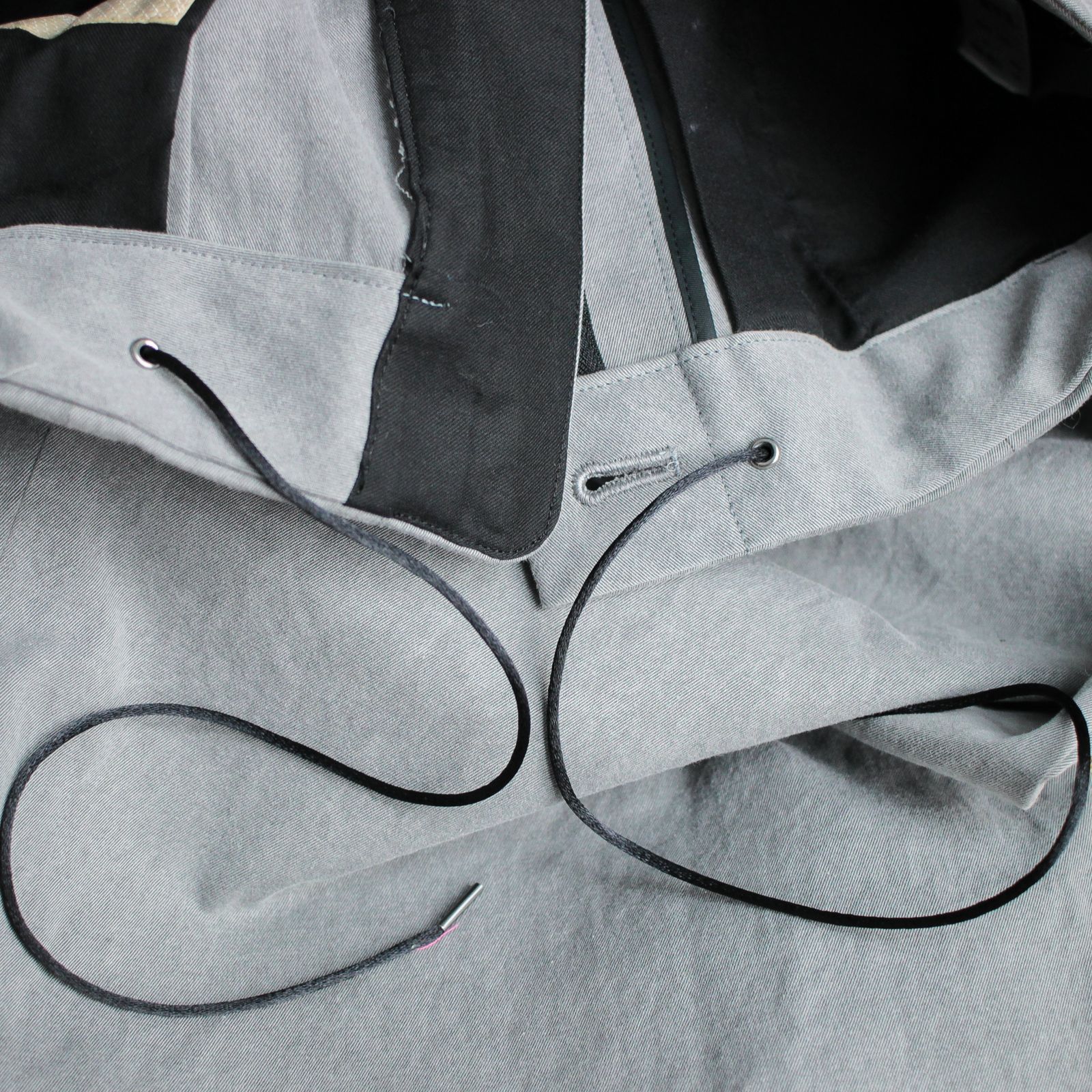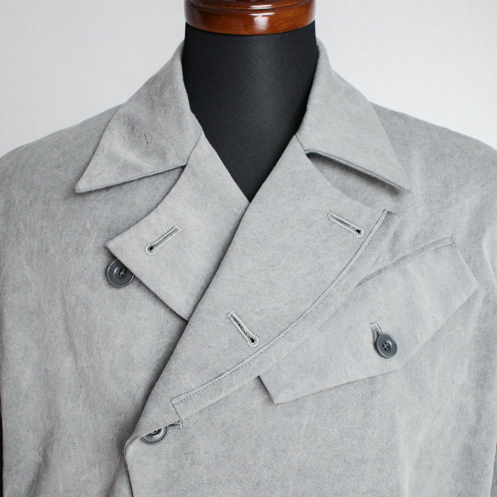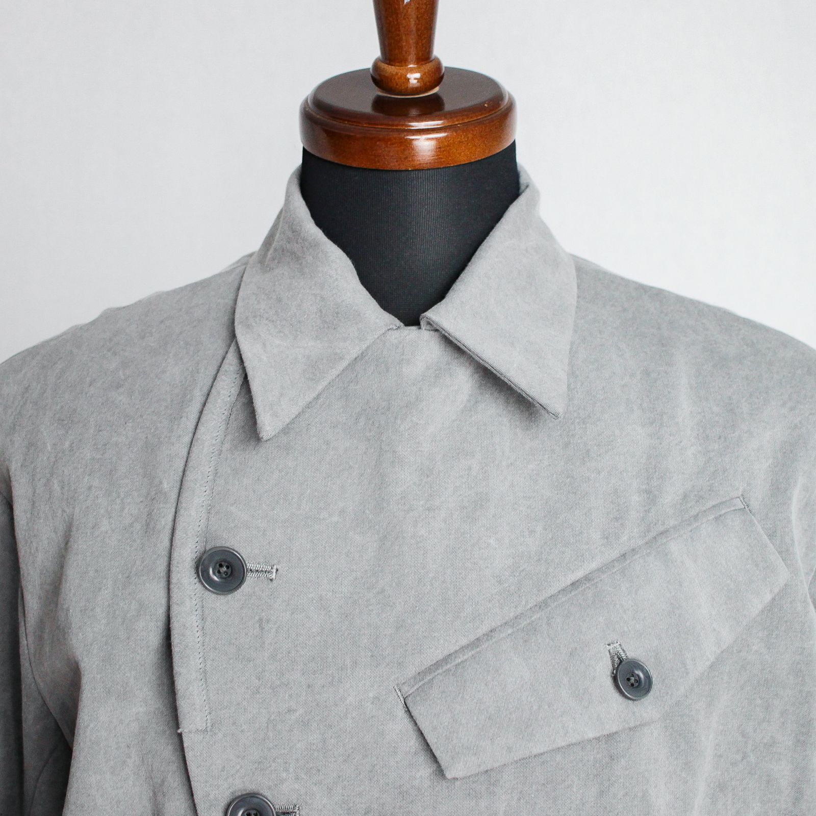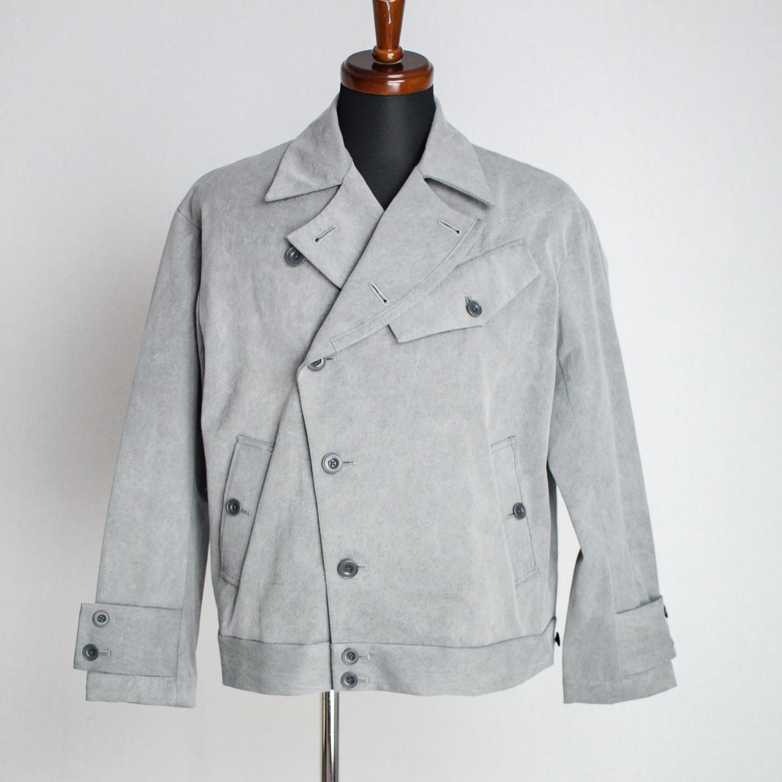炭で荒く染め上げられた生地は、独特のムラ感と奥行きがあり、うっとりと眺めてしまう程の魅力を持っています。その表情に呼応するがの如く配置されたボタンがまたいいアクセントになってます。
