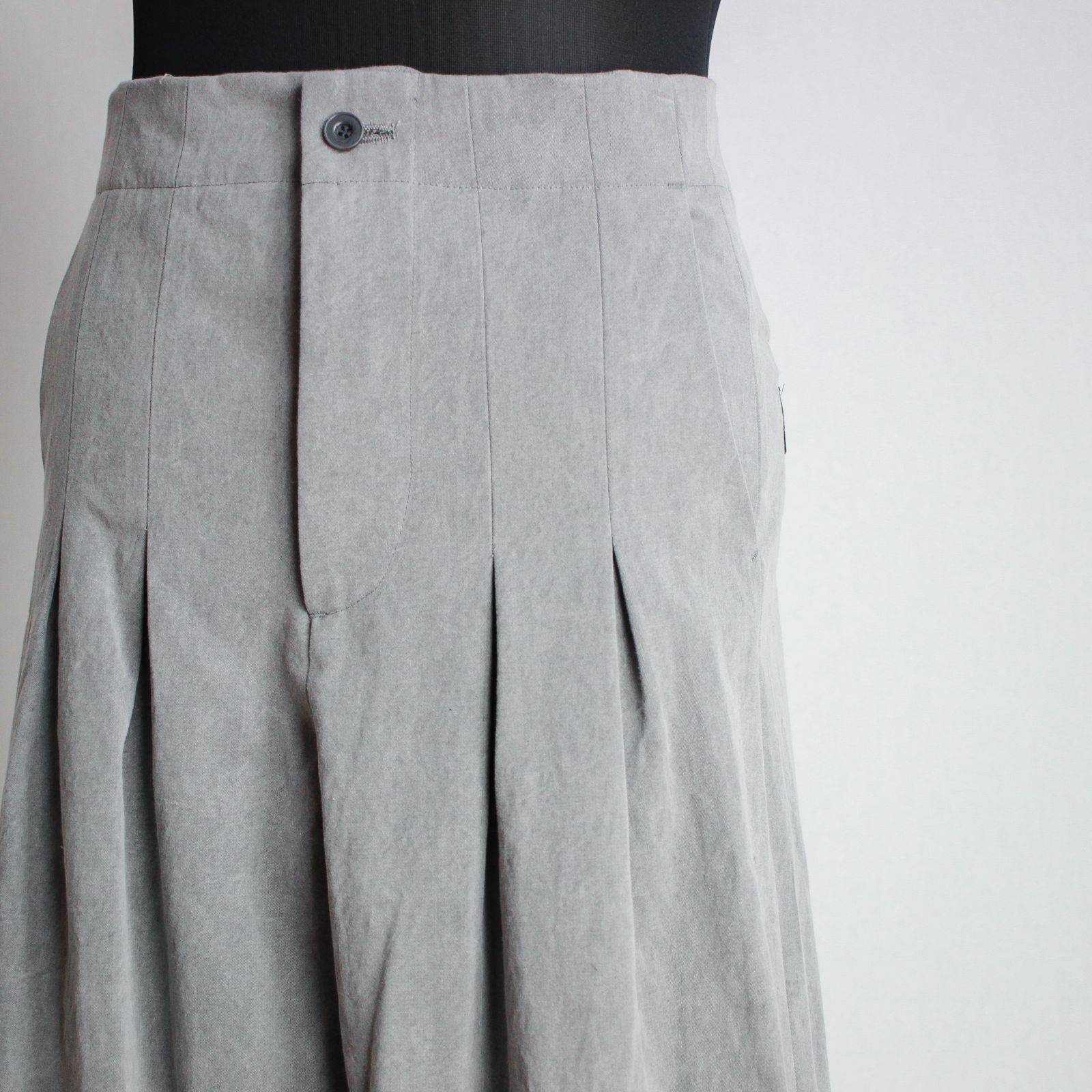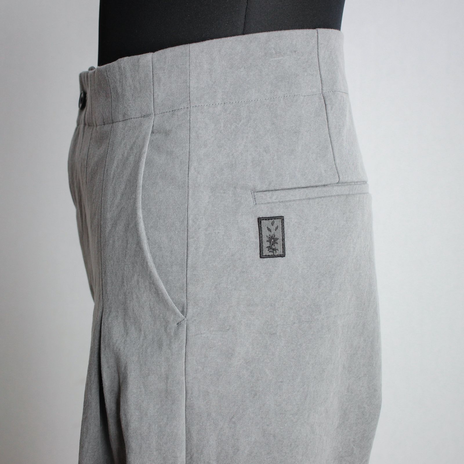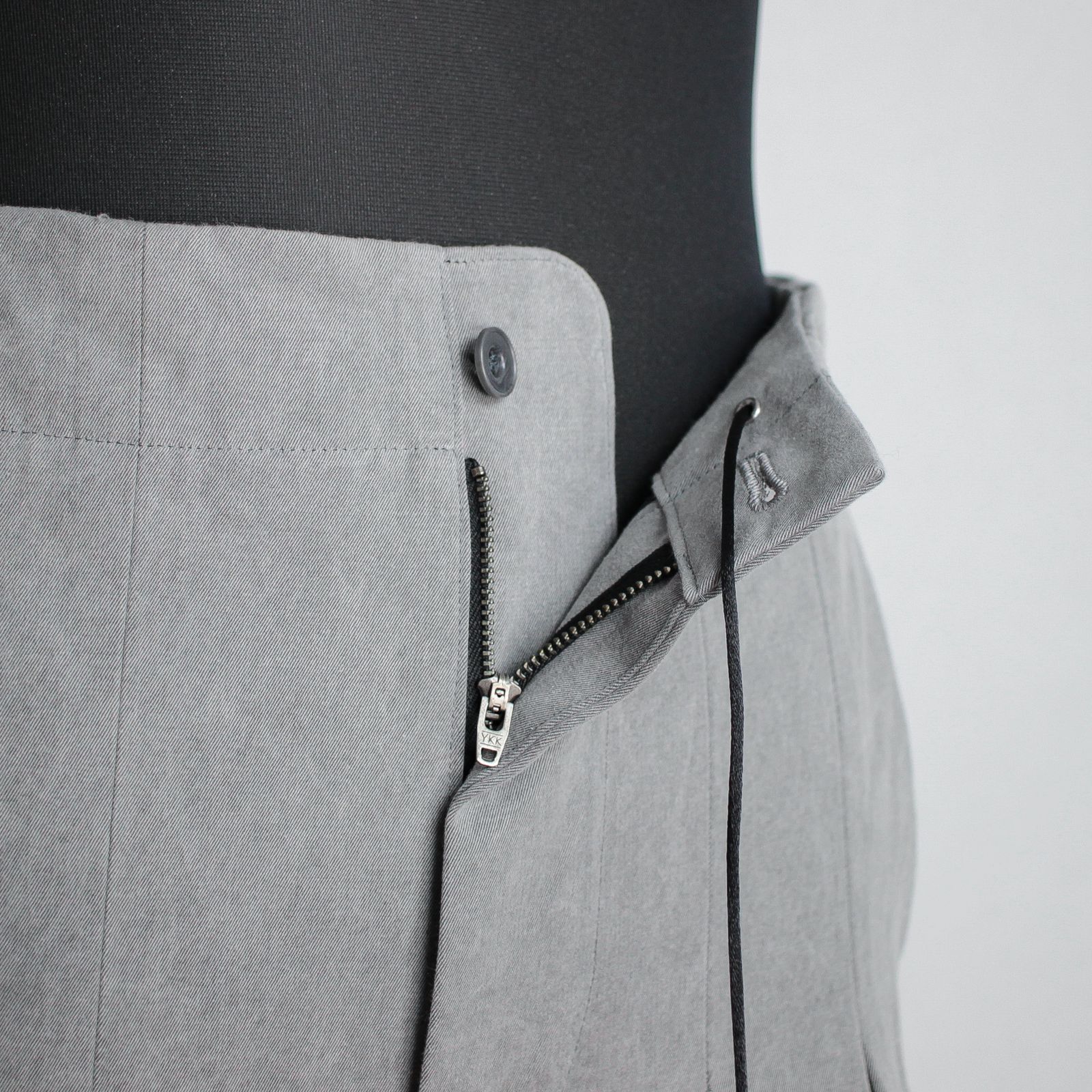 深いタックを取ったベルトループなしのウエスト周り。内側の紐で絞って固定できます。かと言ってゴム入りのイージー仕様ではないのでスッキリキッチリと魅せてくれます。