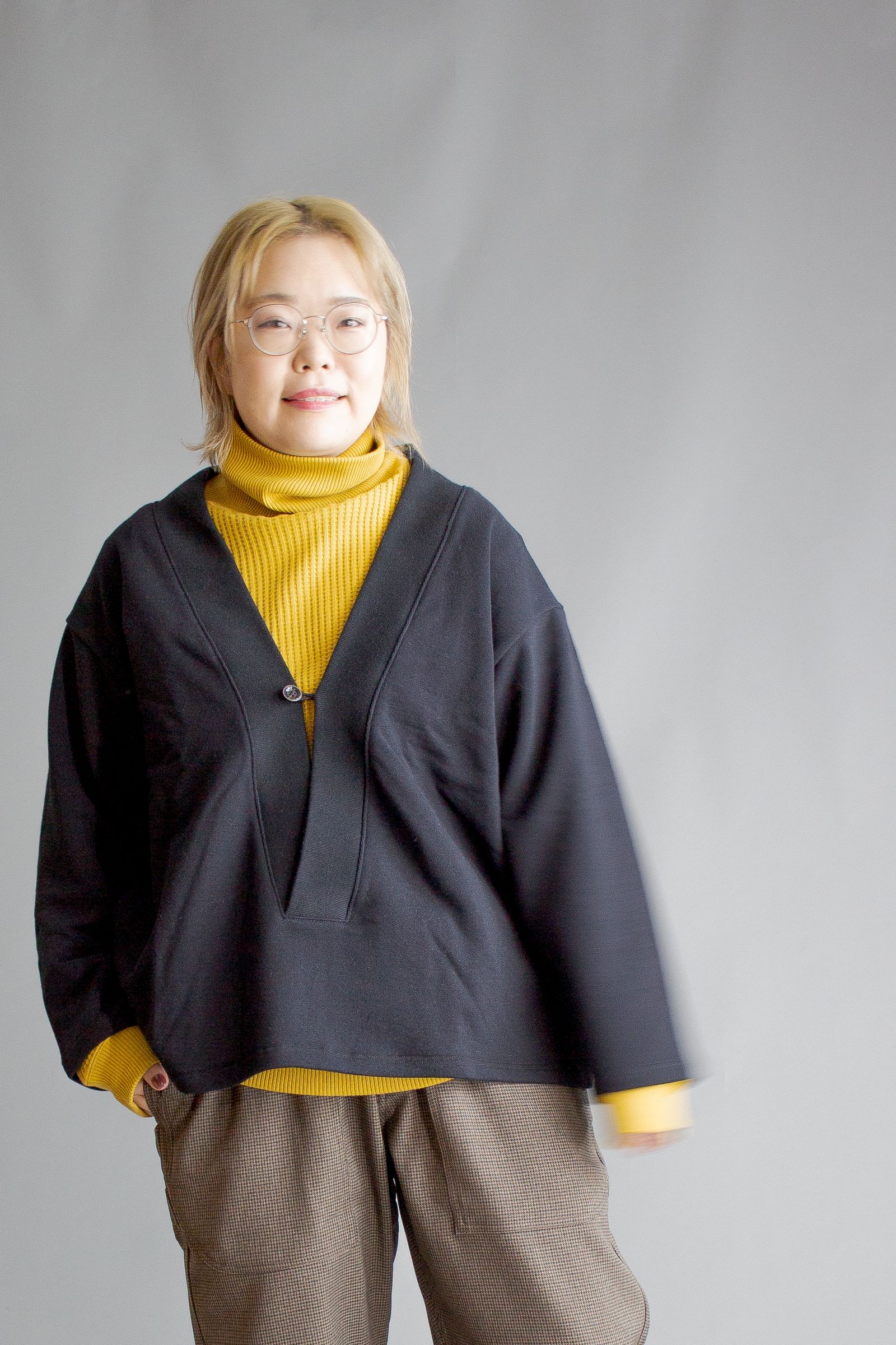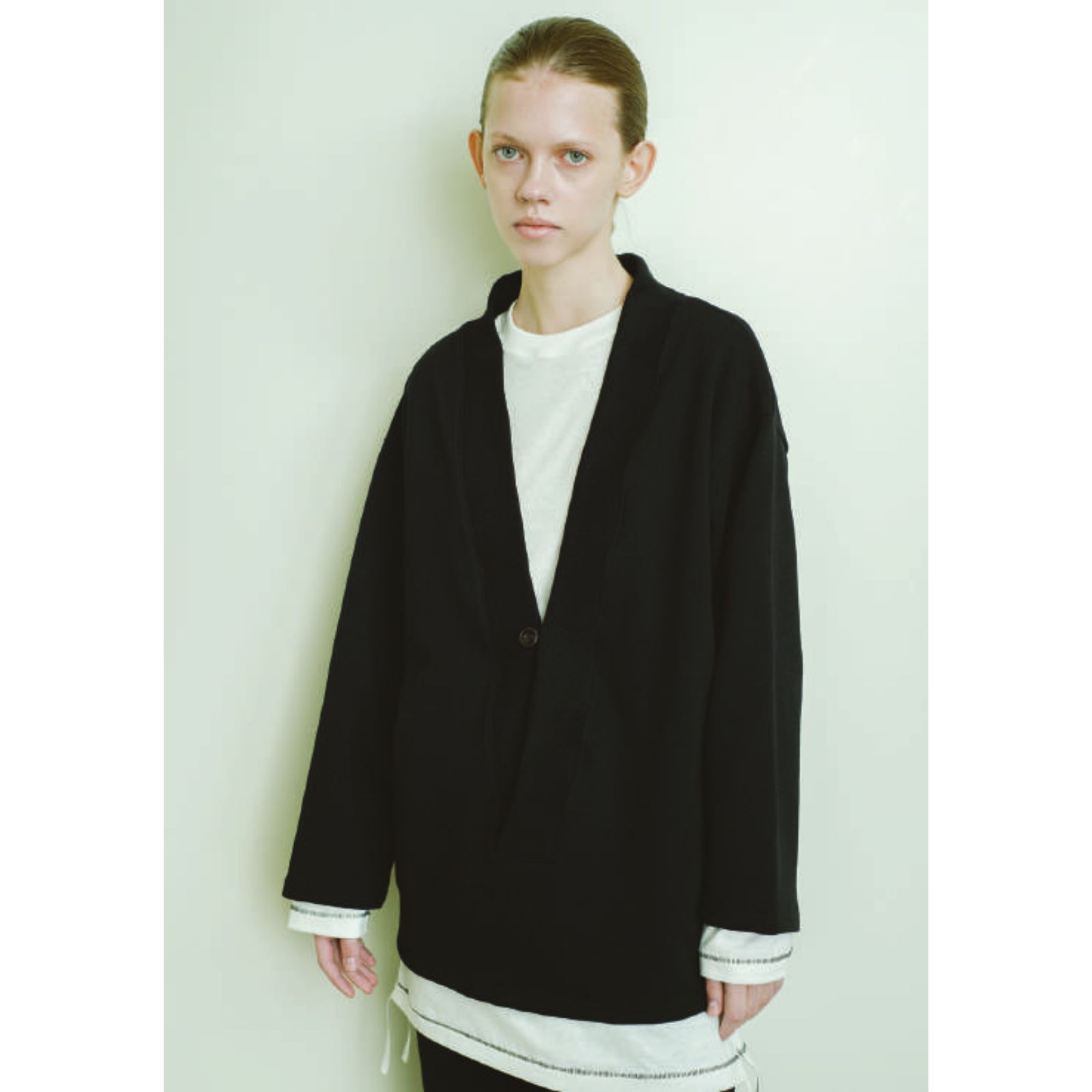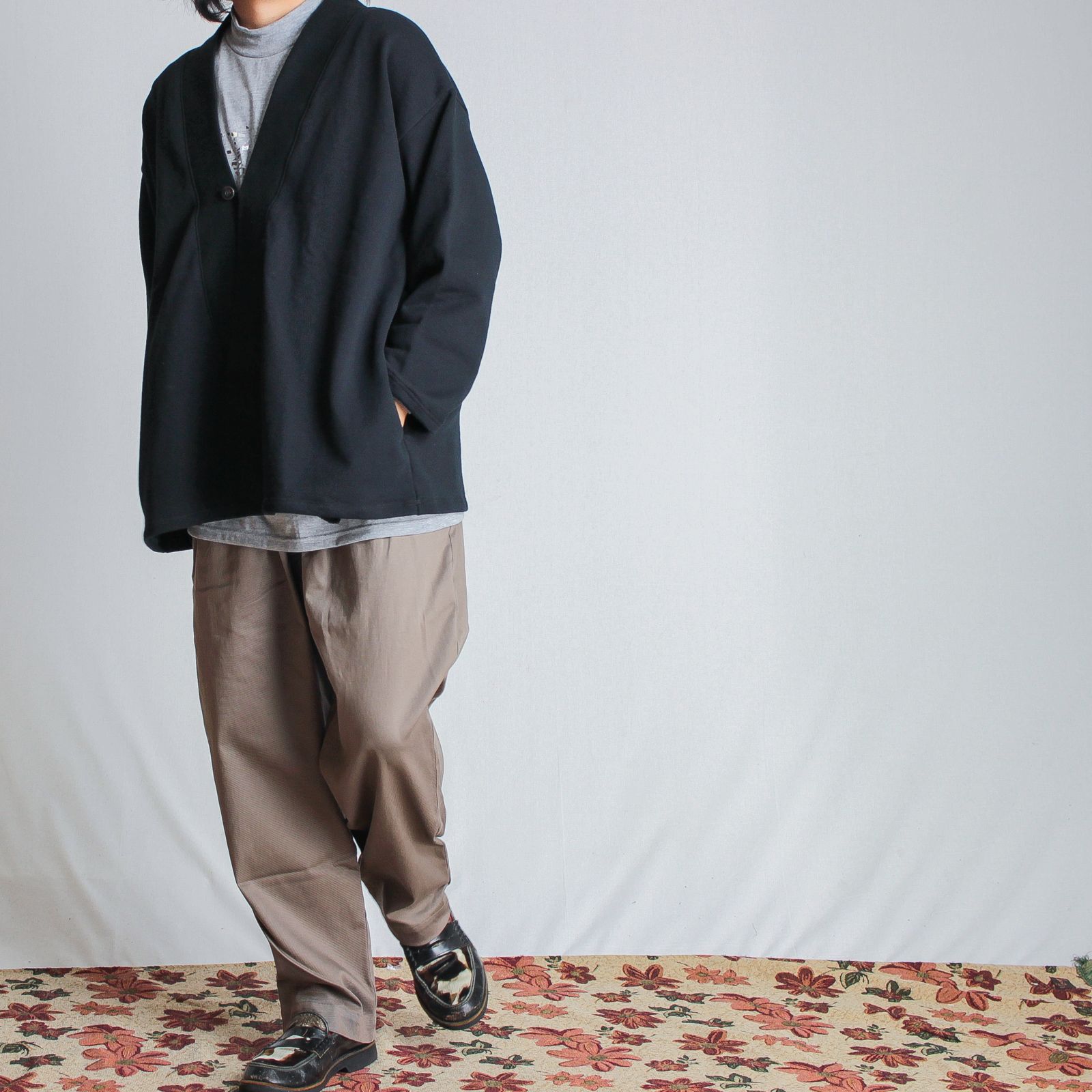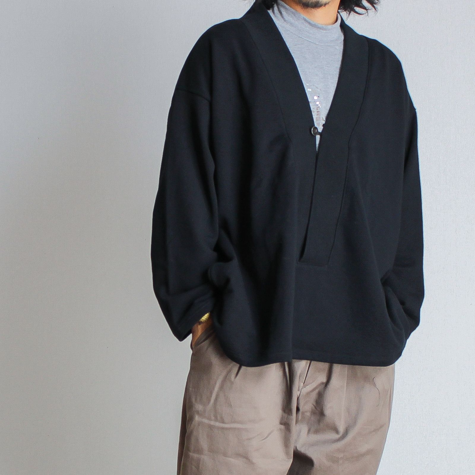 カーディガンのような佇まいのプルオーバーアイテム。