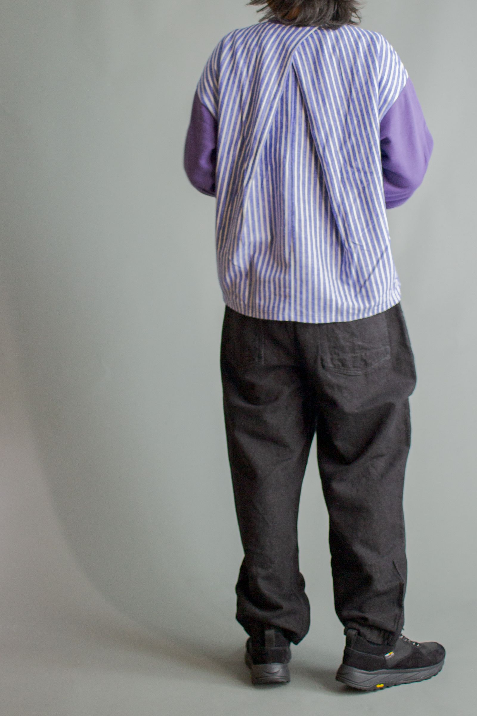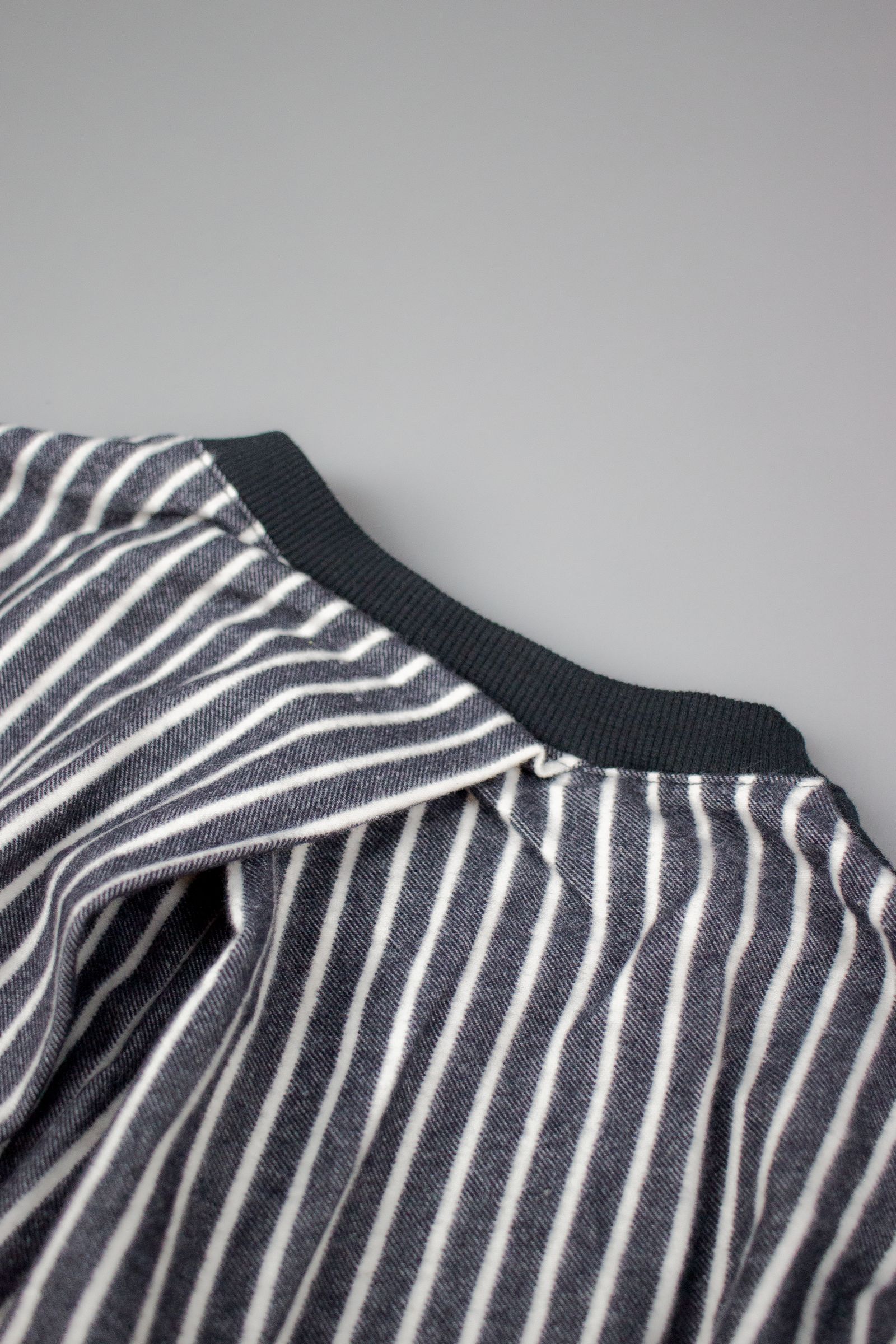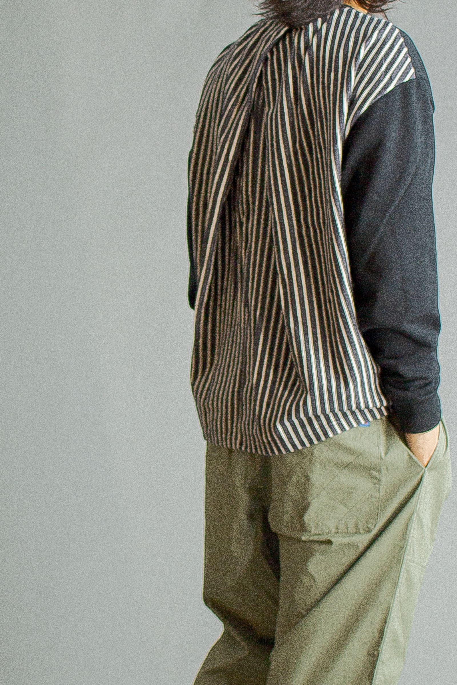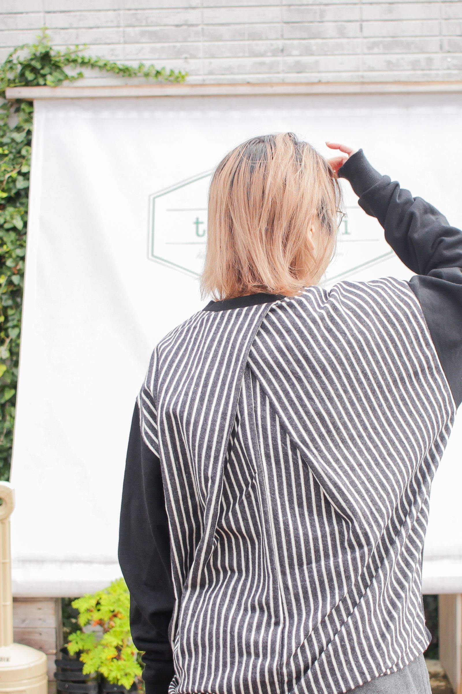 程よい厚さのスウェット生地とストライプ生地で、ロングシーズン楽しめます。これからの時期はコートやジャケットを羽織ってもゴワつかず使い勝手も◎
