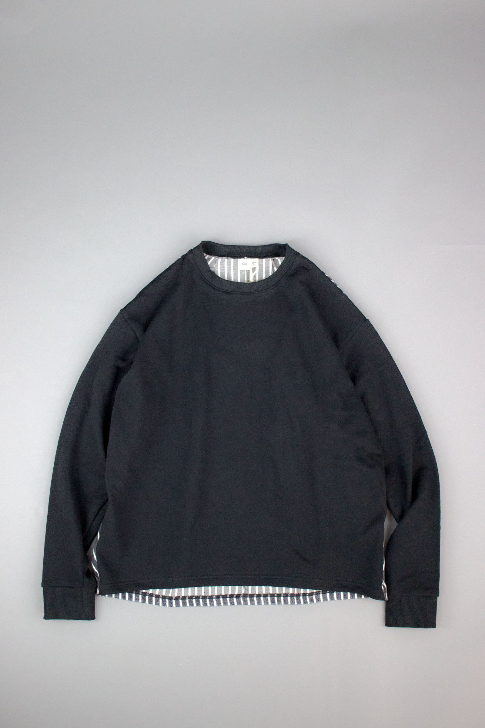 前から見る印象と、後ろから見る印象がガラッと変わる切り替えスウェット。