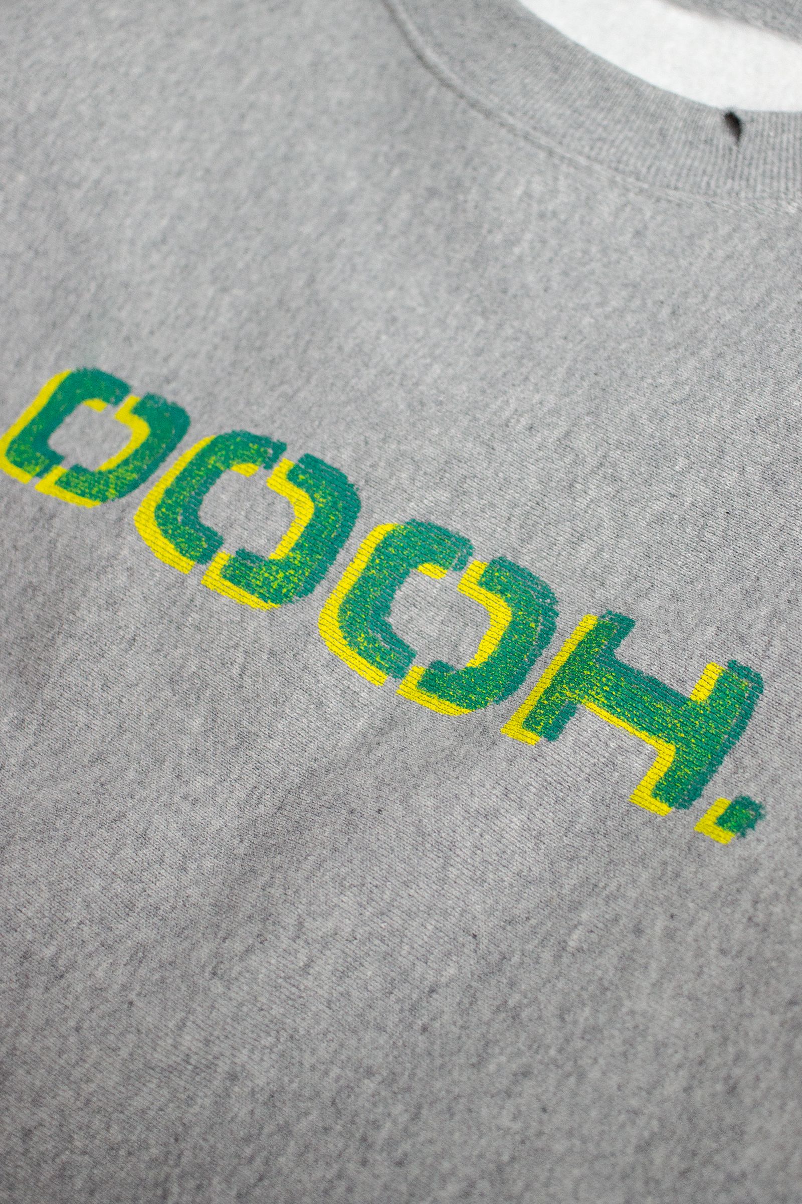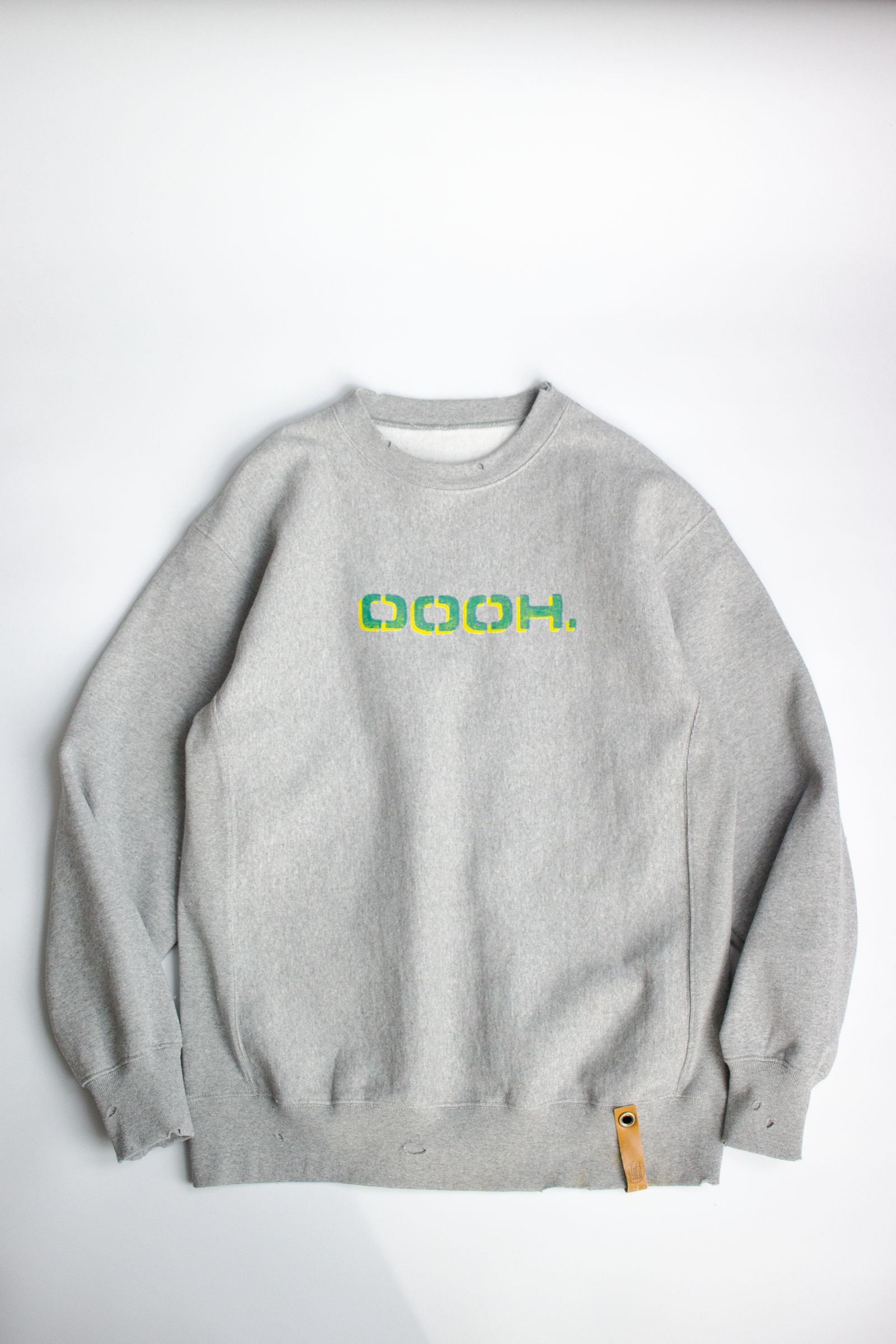 胸のプリントは1点1点ステンシルで手作業でプリント。その後、洗い加工とダメージ加工を繰り返し、唯一無二の1点物に仕上げています。プリント部分は良い感じに擦れて雰囲気出てます!