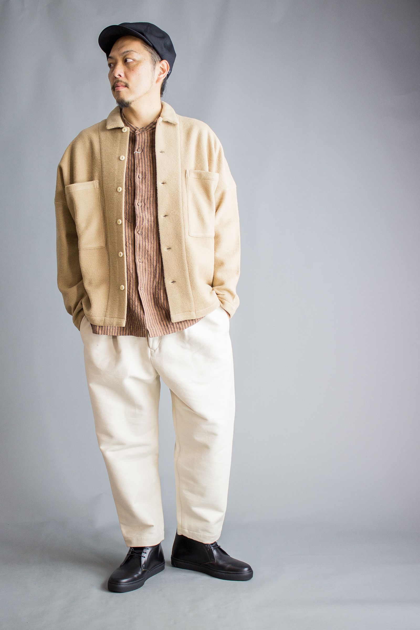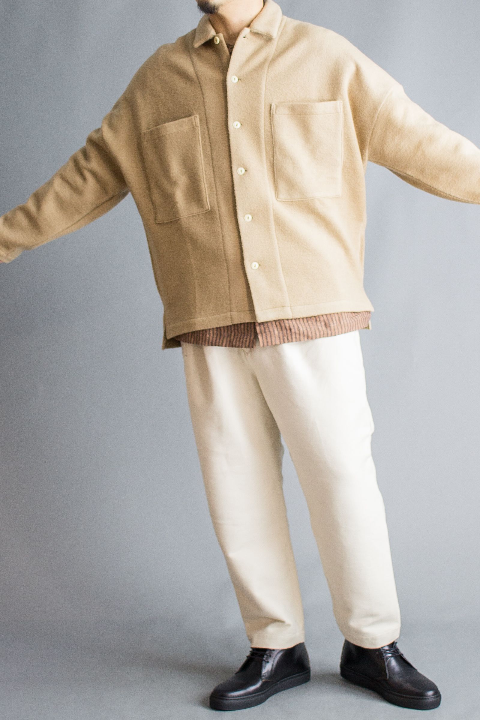 身幅が広めの極上ウールシャツ。形はシャツなんですが、素材感と厚みでアウターとしても使える優れもの。