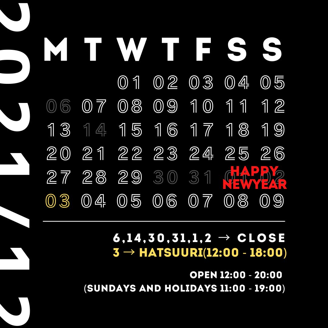 (ONLINE STOREは動いてますが、発送、ご連絡等は1/3以降順次対応となります)