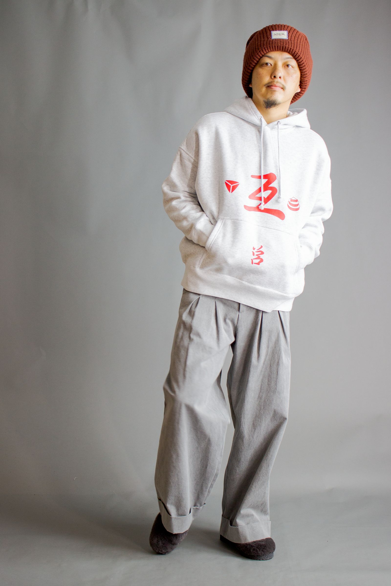 裏起毛の暖かいパーカーで、ふんわりと軽い着心地。身幅が広く、丈は少し短め。このシルエットは体格や男女関係なく楽しめるのが良いですね◎