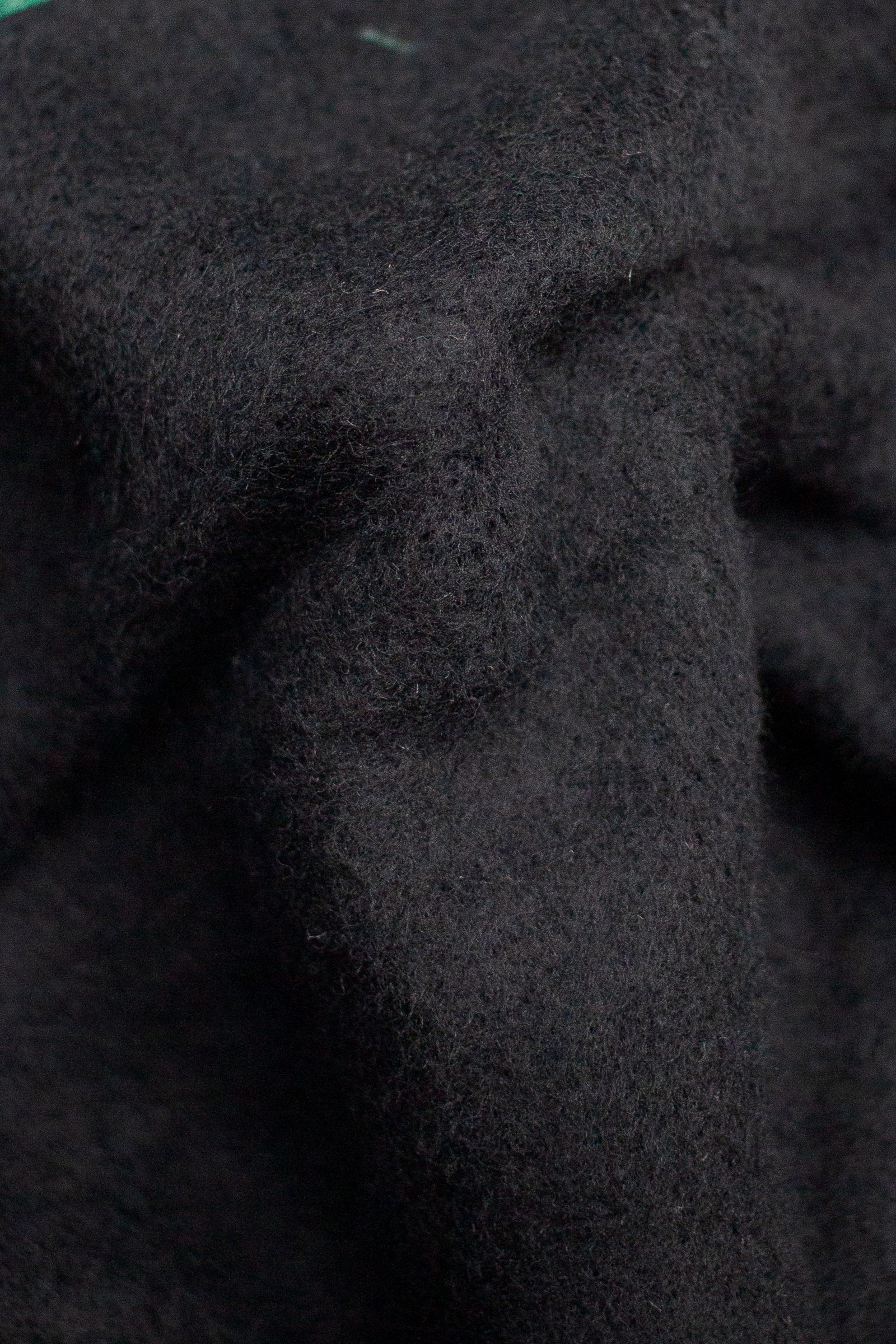 生地はしっかりと肉厚な裏起毛素材。見た目通り、いや、見た目以上に暖かく肌あたりも抜群。画像では分かりにくですが、表面は少し光沢があり、他のスウェットとはまた違った表情を見せています。