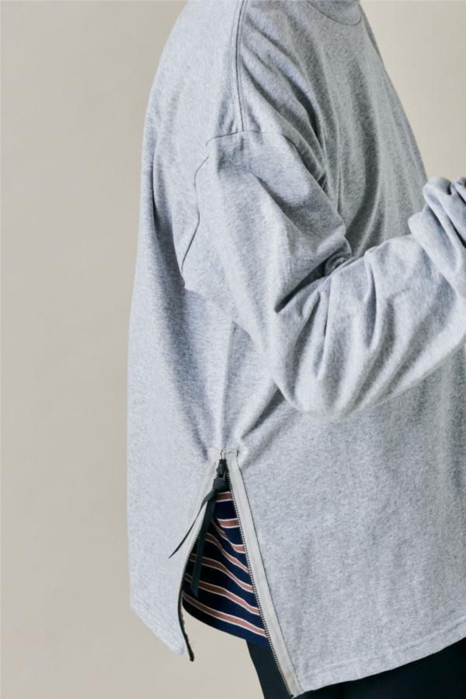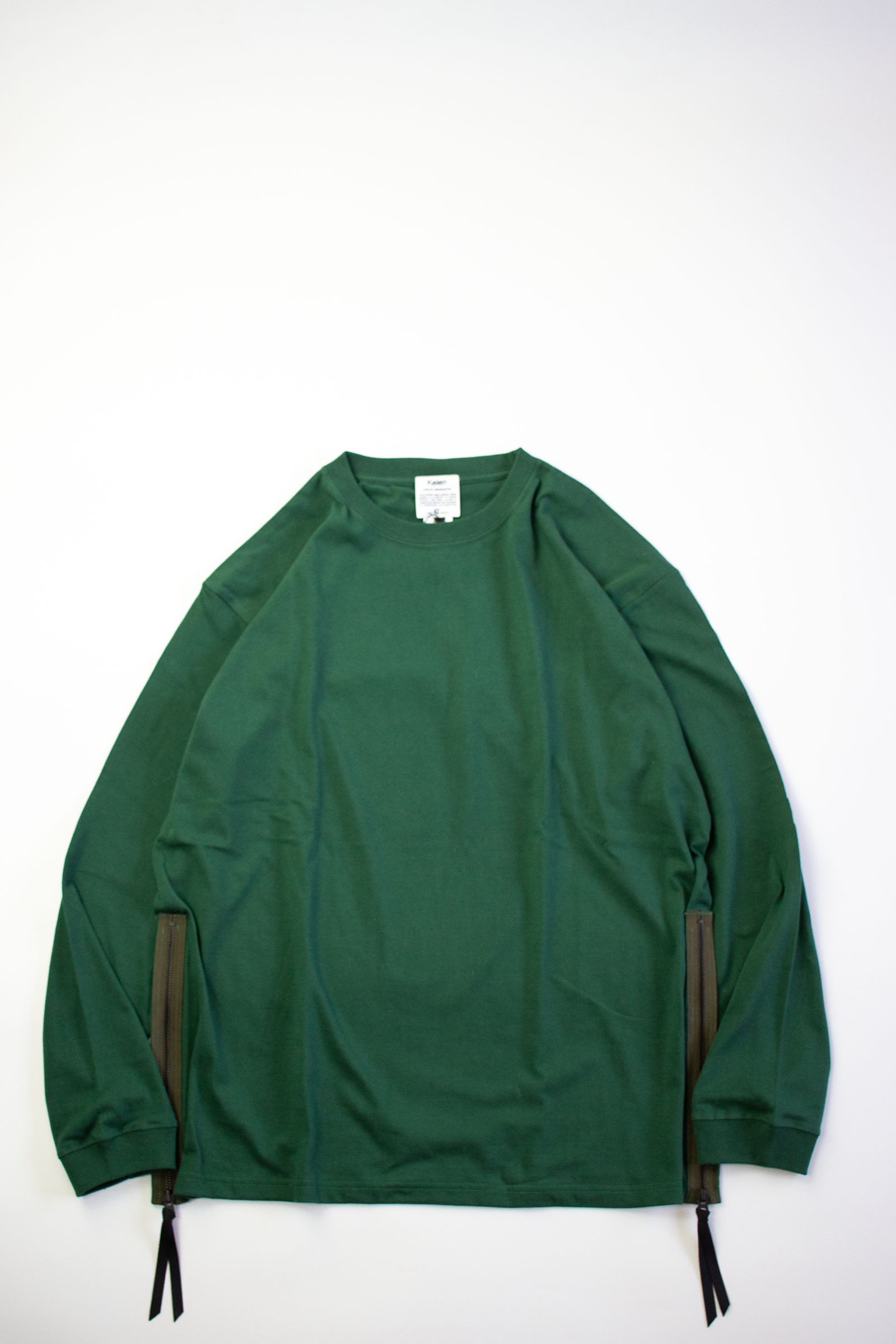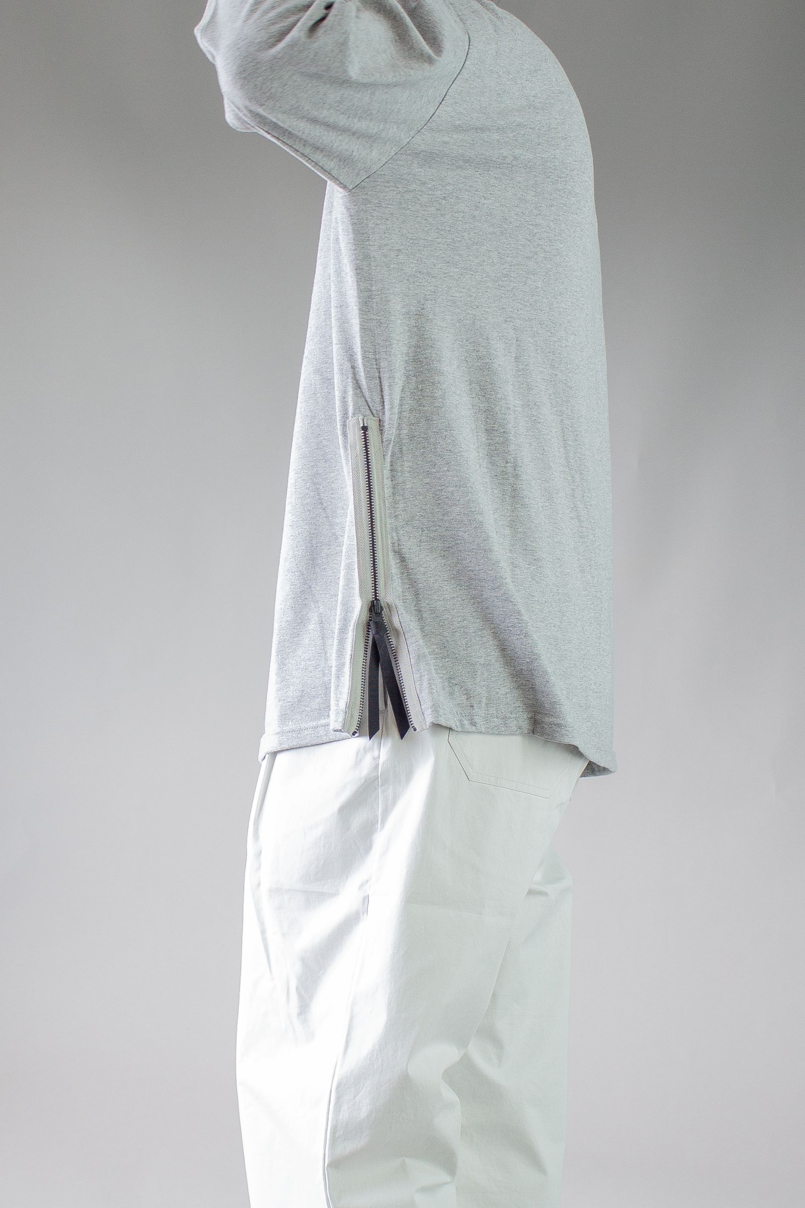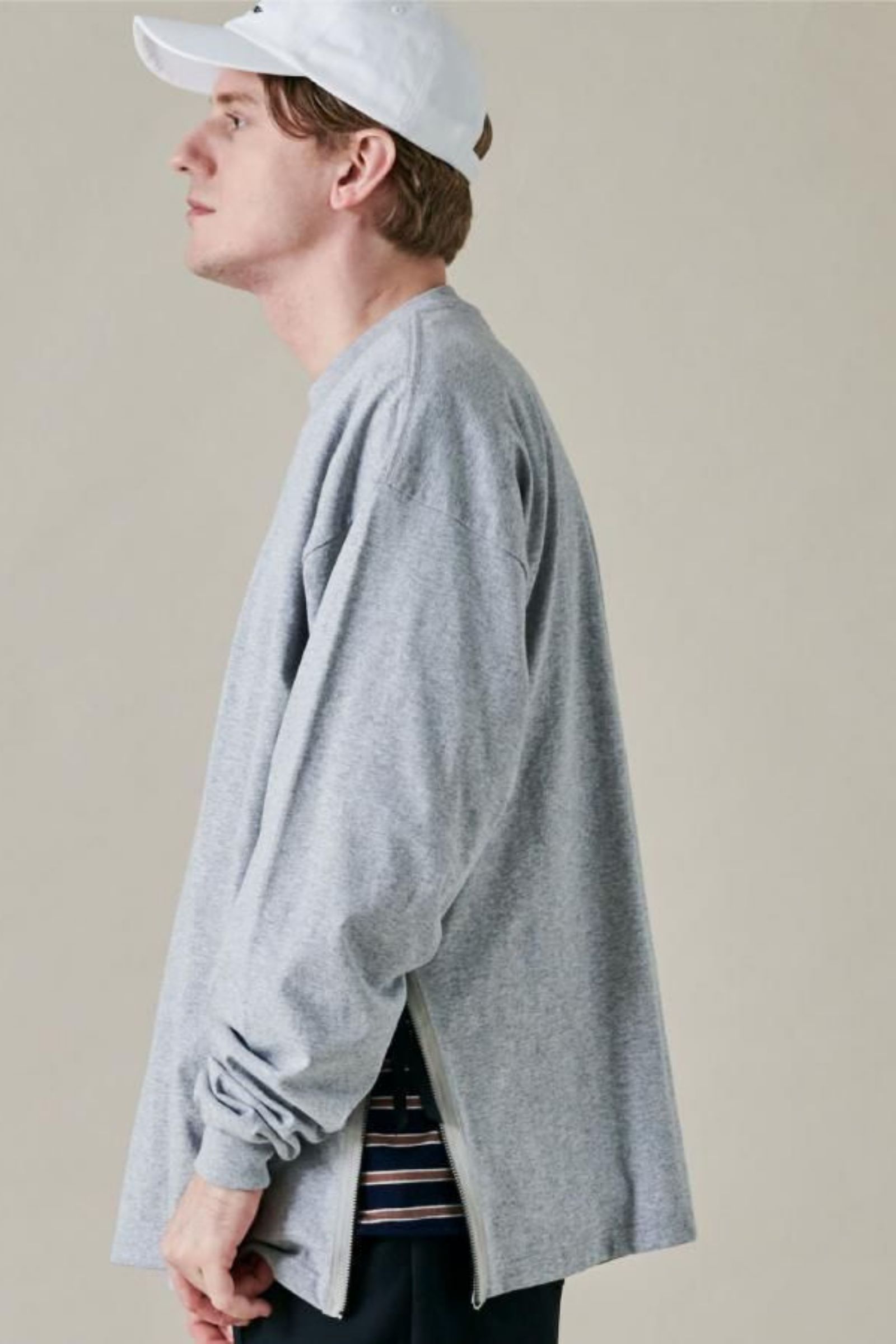 シンプルな無地のロンT。デザインポイントは両裾のファスナー!