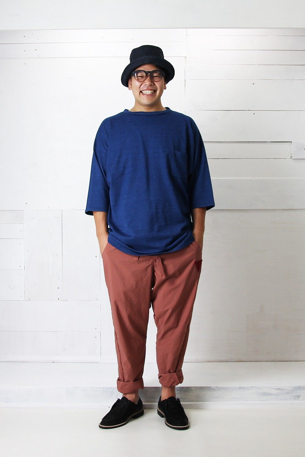 全体をインディゴ染めしているので、お洗濯の際の移染には十分にご注意ください。少し面倒ですが単品洗いをオススメします。この面倒の先に、インディゴならではの色落ち&経年変化というお楽しみが待っているので是非、装いと共にアイテムの成長もお楽しみください。