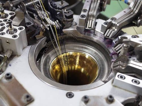 ROTOTOのソックスは国内一の生産量を誇る靴下産地 奈良県・広陵町を中心とした工場で生産しており、職人の方々と共に取り組み、話し合う事で生まれる現場(工場)での「ものづくり」を大切にしています。あまり知られてはいませんが靴下編み機には実は沢山種類があり、編み機によって編めるソックスは様々です。