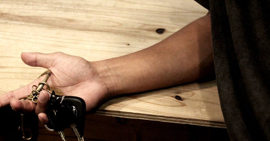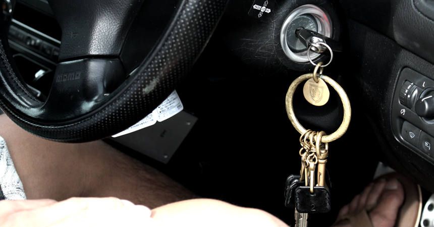 お気に入りのキーホルダーをジャラジャラさせ愛車でドライブ♪