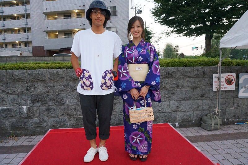 ポケットの和柄と彼女の浴衣の柄をうまく合わせてくれてます! これは真似したいテクニックですね♪
