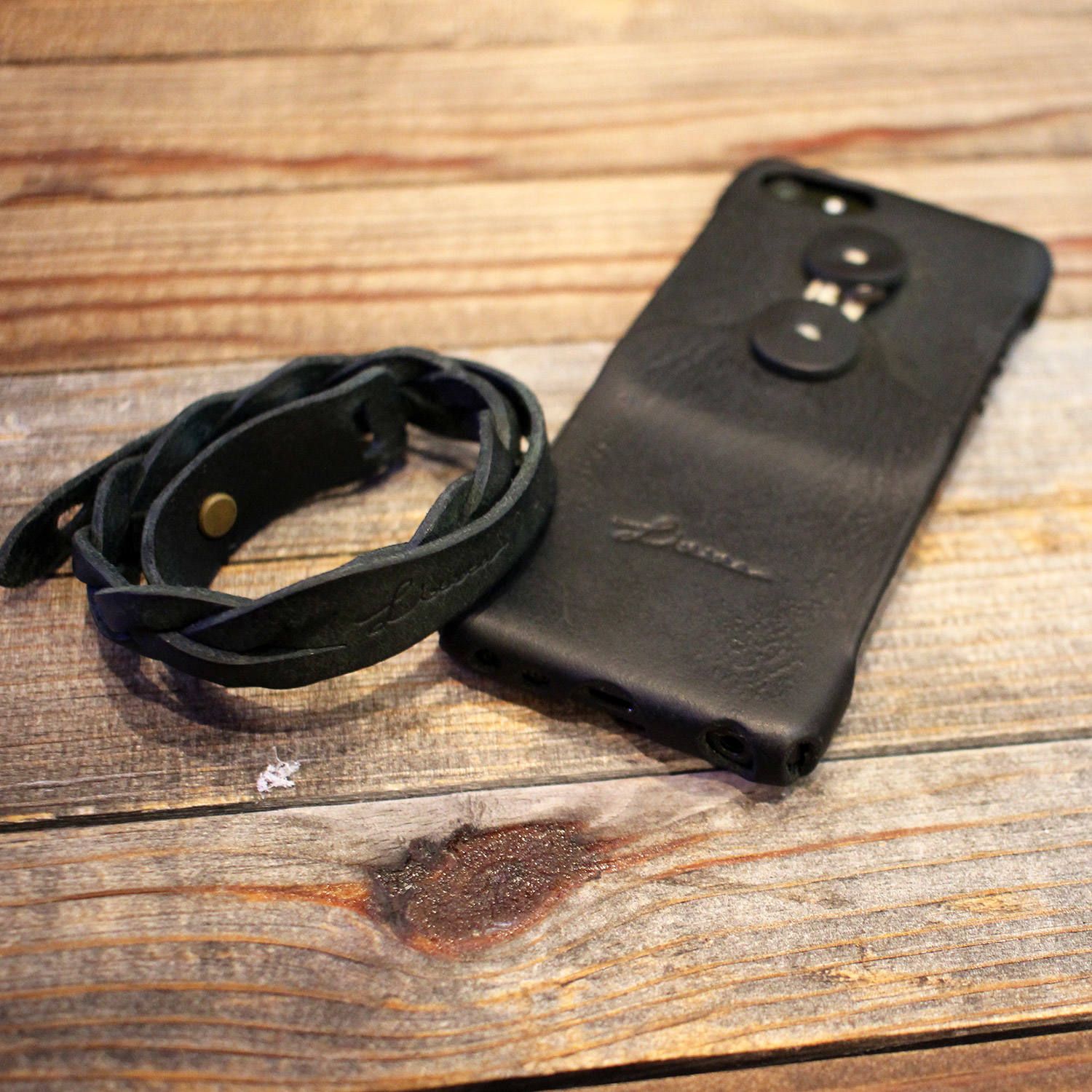 実はiPhone Dressと同じ革を使ったブレスレットも注文頂き、セットで愛用していただいてます! 小物を同じ革で揃えるのはおしゃれですね〜♪いつも身につけてくれてるのが嬉しいです!