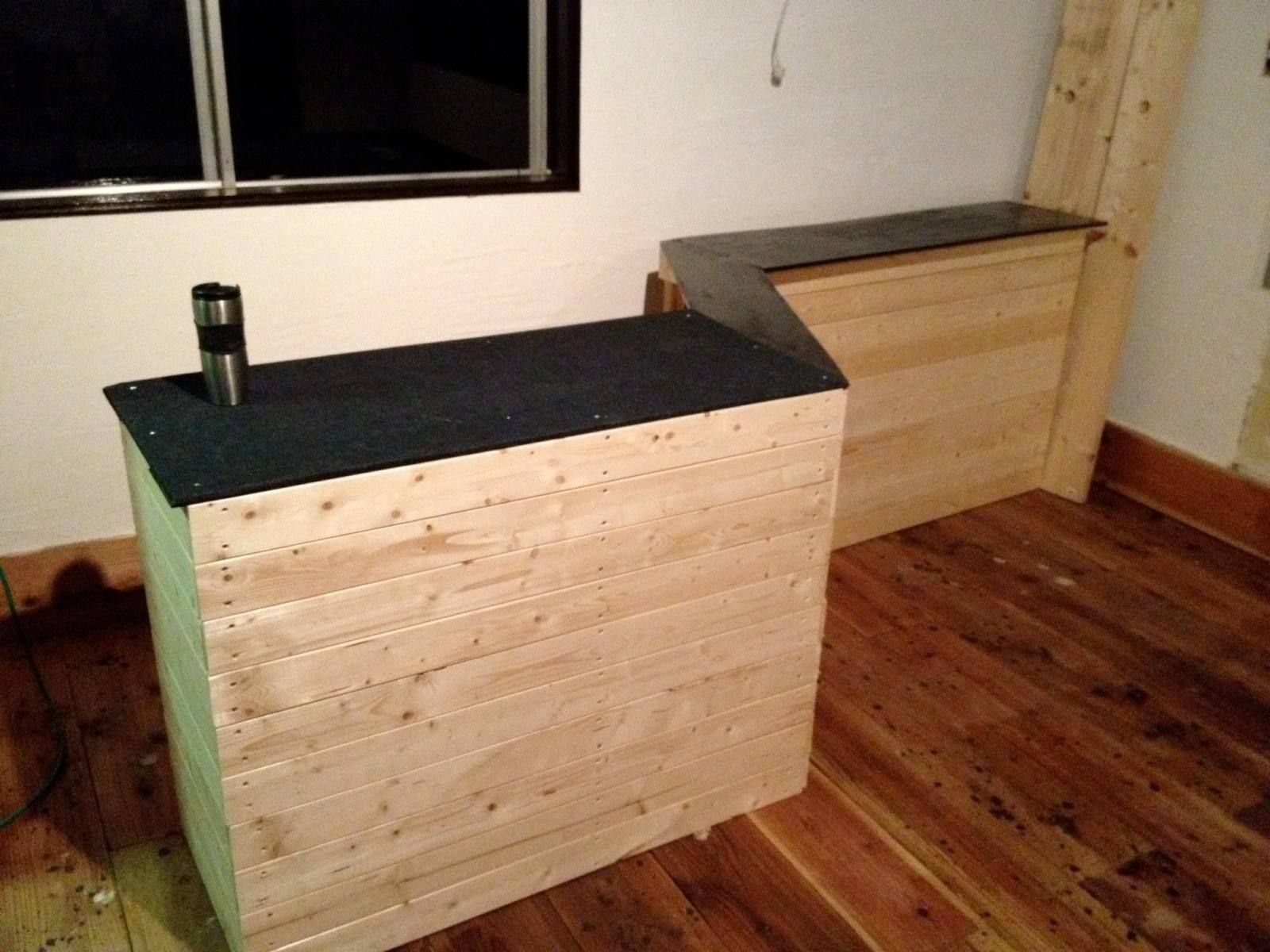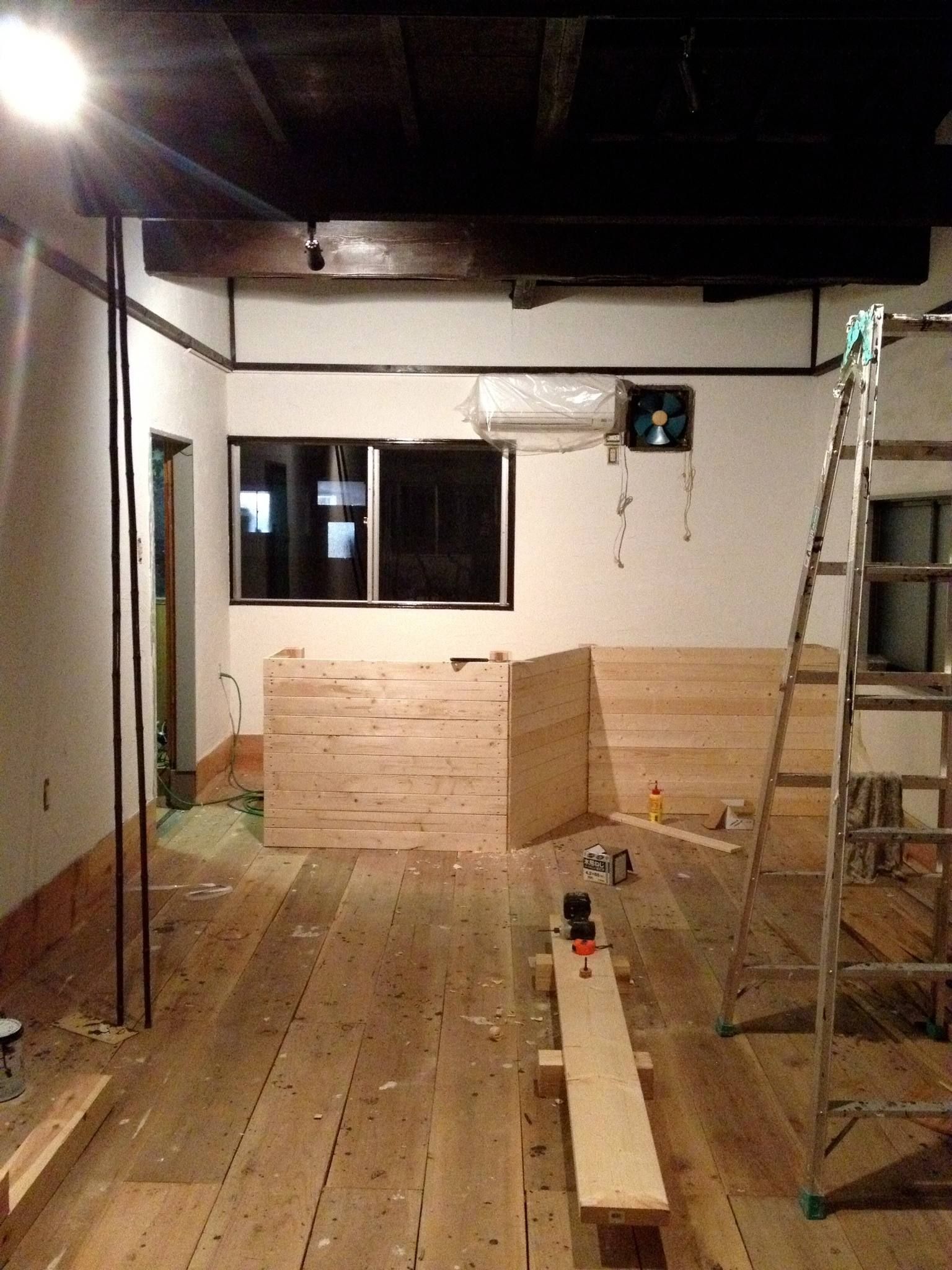 店舗の大まかな改装が終わると次は什器です!2x4材を使ってカウンターを作ります。