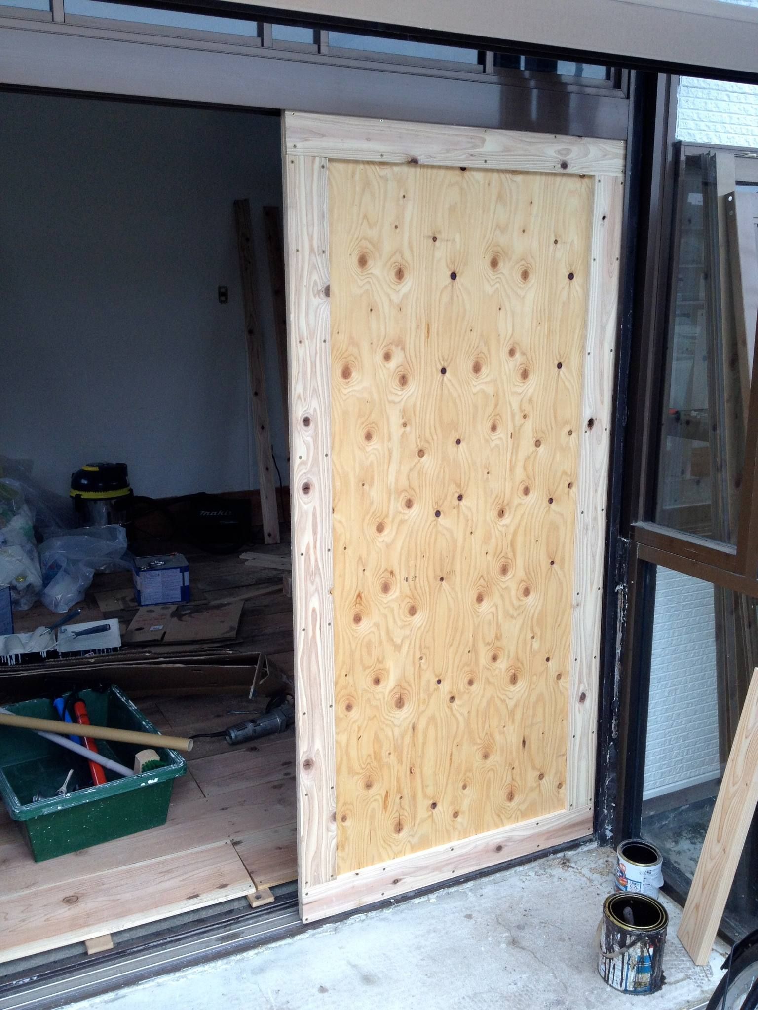 そしてベニア板で壁の下地を作り、その後梁にペンキを塗っていきます!