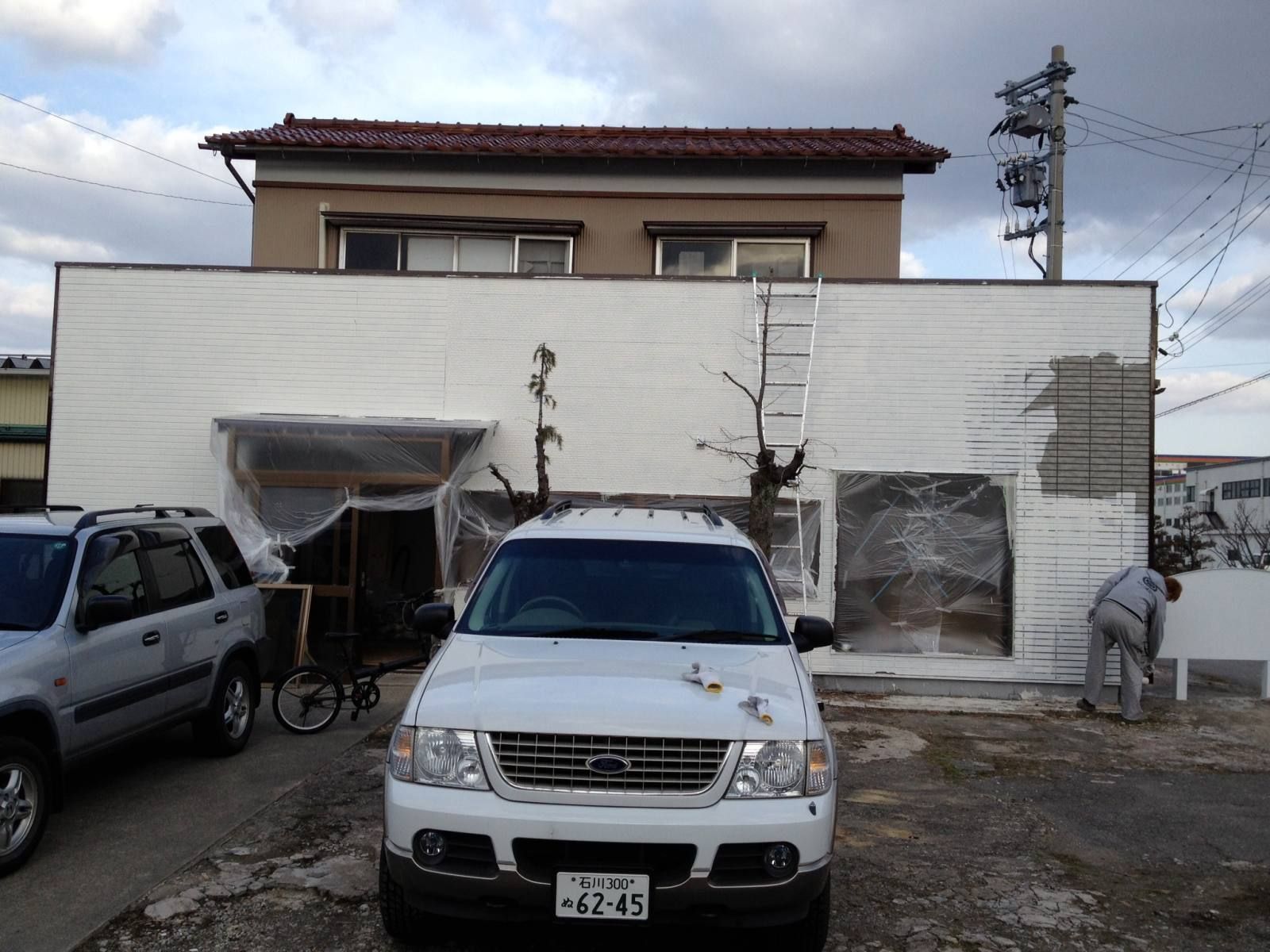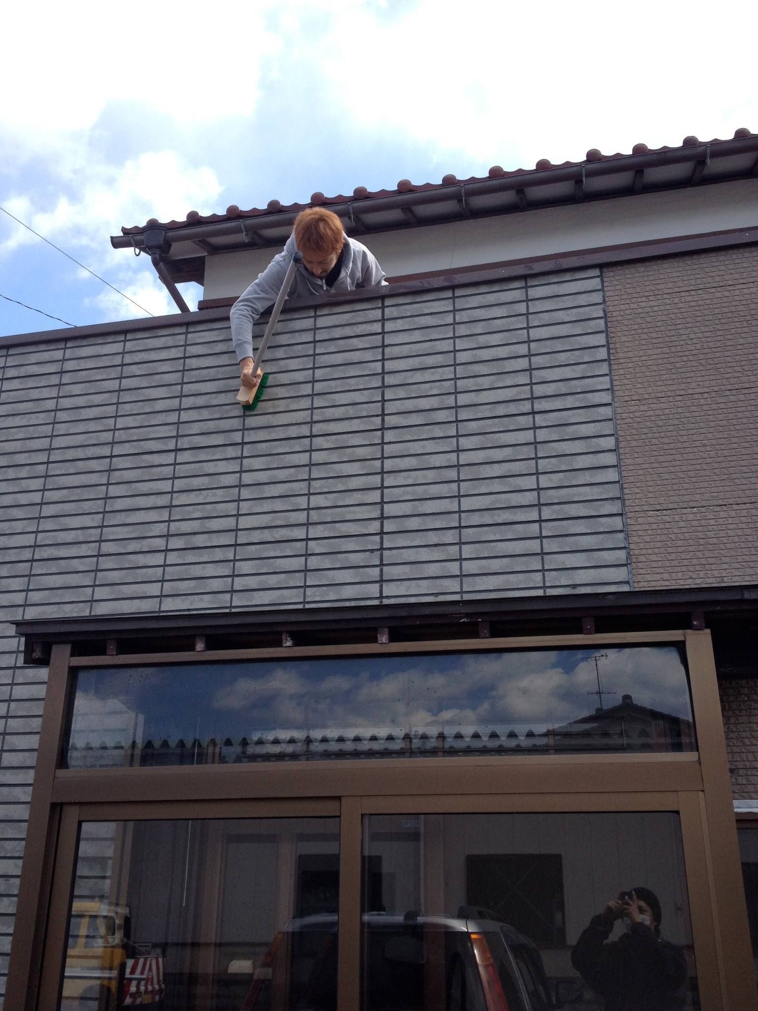 内装がだいぶ形になって来たので次は外装です!壁面を綺麗に洗い、ペンキで塗装します。